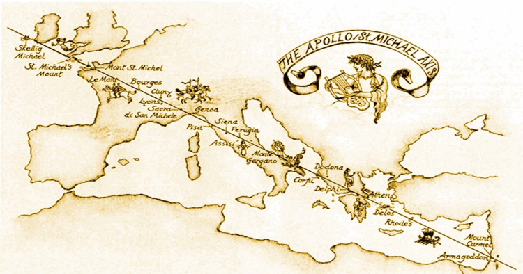 Εν μέσω των αιώνων των Σταυροφοριών, ναοί που χτίστηκαν στον Αρχάγγελο Μιχαήλ κατασκευάστηκαν κατά μήκος ενός μονοπατιού γνωστού ως «Απόλλωνας-Αγ. Ο Michael Axis διαθέτει μια ευθεία γραμμή από το δυτικότερο σημείο του Skellig Michael στην Ιρλανδία (όχι τυχαία η τοποθεσία του ναού των Τζεντάι του Luke Skywalker στις τρεις πιο πρόσφατες ταινίες Star Wars) και καταλήγει στο ανατολικότερο άκρο του όρους Karmel κοντά στη Μεγιδδώ.