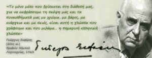 Με άλλα λόγια: εθνική ταυτότητα σημαίνει εθνική συνείδηση. Αλλά εθνική συνείδηση ελληνικής καταγωγής, ελληνικής παράδοσης, ελληνικού πολιτισμού σημαίνει συγχρόνως συνείδηση ελληνικής γλώσσας, η οποία (ελληνική γλώσσα) είναι η πρωταρχική, η γνήσια και αντιπροσωπευτική έκφραση όλων αυτών! Ό,τι δεν εκφράζεται στη γλώσσα στην οποία γεννήθηκε, καλλιεργήθηκε, «σαρκώθηκε» και υπάρχει, παίρνει μοιραία τον χαρακτήρα «ξηρών πληροφοριών» σε μιαν άλλη γλώσσα -παύει να βιώνεται, μεταλλάσσεται, αποσπάται από την έννοια της συνείδησης!