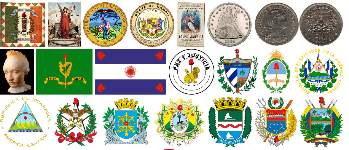 Μεταξύ αυτών των δημοκρατιών της Λατινικής Αμερικής/Καραϊβικής, που διαθέτουν το φρυγικό καπέλο, ο Peter παρουσιάζει: Ουρουγουάη, Κούβα, Αργεντινή, Ελ Σαλβαδόρ, Νικαράγουα, Παραγουάη, την πόλη του Ρίο ντε Τζανέιρο και την Αγία Καταρίνα στη Βραζιλία.