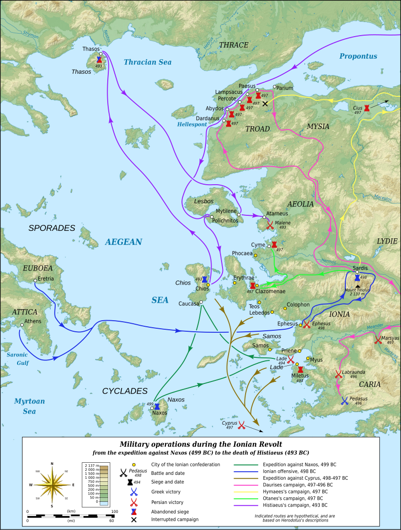 Αυτού του είδους τα σύμβολα δεν είναι ποτέ ένα απλό πράγμα, και στην περίπτωση της εξέγερσης των Ιωνικών Πόλεων-Κρατών (γνωστή: Φρυγία) το 499-493 π.Χ. κατά της Περσικής Αυτοκρατορίας, το φρυγικό καπέλο ήταν σύμβολο ελευθερίας και τιμής, που συνέπεσε με την ήττα του Σόλωνα από την ολιγαρχία της Αθήνας, την περίφημη μάχη του Μαραθώνα το 490 π.Χ. και την εποχή του Αισχύλου, του Σοφοκλή, του Σωκράτη, του Πλάτωνα κ.λπ., που γέννησε το καλύτερο από αυτό που μερικές φορές ονομάζεται «δυτικός πολιτισμός».