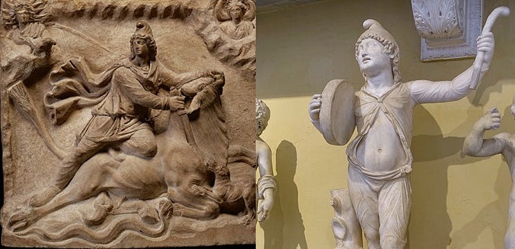 Αυτές οι λατρείες δεν παρουσίαζαν θεότητες που φορούσαν φρυγικά καπέλα ΜΕΧΡΙ να κατασταλούν οι εξεγέρσεις και να εγκατασταθούν στην Τουρκία πριν μεταφερθούν στη Ρώμη κατά τη διάρκεια του 2ου Καρχηδονιακού Πολέμου (218 – 201 π.Χ.). Η πρώτη επίσημη εμφάνιση του Μίθρα στη Ρώμη φαίνεται να συνέβη κατά την περίοδο του στρατηγού Πομπήιου (100-48 π.Χ.) και οι προηγούμενες περσικές αποδόσεις του Μίθρα (πριν από την έγχυση της λατρείας στη Φρυγία έναν αιώνα μετά τη δημοκρατική εξέγερση του 493 π.Χ.) δεν περιείχαν φρυγικό καπέλο.