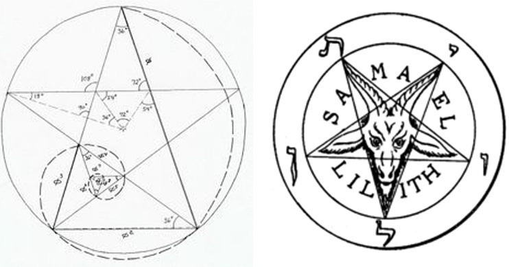 Ένα πεντάγωνο μπορεί να σημαίνει τη χρυσή τομή και έτσι, το μυαλό του θεϊκού πεδίου του Δημιουργού... ή θα μπορούσε να συμβολίζει τη λατρεία του Baphoment και τον σατανισμό.