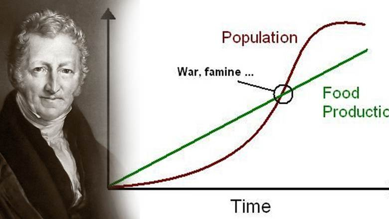 Καθορίζοντας τη μισάνθρωπη πίστη του στον υπερπληθυσμό, ο οικονομολόγος της Βρετανικής Εταιρείας Ανατολικών Ινδιών Thomas Malthus (1766-1834) υποστήριξε έναν νέο «θεμελιώδη νόμο» στο περίφημο Δοκίμιο για τον Πληθυσμό του 1799: