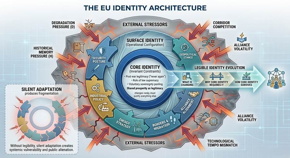 Το πρόβλημα δεν είναι ότι η αυτοσυγκράτηση της Ευρώπης είναι παράλογη. Είναι ότι ο περιορισμός χωρίς ένα κατανοητό πρωτόκολλο εξέλιξης ταυτότητας γίνεται δυσδιάκριτος από την αδράνεια υπό σωρευτική υποβάθμιση.