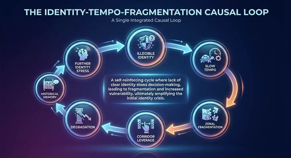 Σε μια συνέχεια, θα παρουσιάσω το ευρύτερο μοντέλο πίσω από αυτή τη διάγνωση. Ξεκινά από μια απλή προϋπόθεση: η ασυμμετρία δημιουργεί διαβαθμίσεις πλεονεκτήματος, η συνοχή καθορίζει εάν αυτές οι κλίσεις μπορούν να αξιοποιηθούν σε κλίμακα και η κοινή γεωμετρία. Οι εσωτερικοί χάρτες που χρησιμοποιούν τα ιδρύματα για την πλοήγηση στον κίνδυνο, την αιτιότητα και τον χρόνο. αποφασίζει εάν τα συστήματα καταρρέουν ή αναδιαμορφώνονται υπό πίεση. Η διαρκής ισχύς, υπό αυτή την έννοια, δεν αφορά την κυριαρχία, αλλά τη διατήρηση του πεδίου στο οποίο η εξουσία μπορεί να λειτουργήσει χωρίς να διαλυθεί.