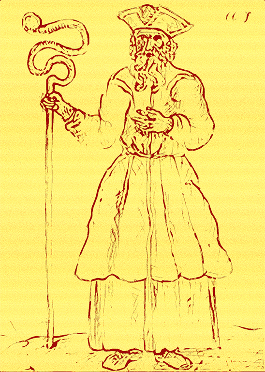 Εδώ, οι παραλληλισμοί με τα προηγούμενα ινδοευρωπαϊκά ιερατεία γίνονται αλάνθαστοι. Ο Pater προσδιορίζεται ρητά ως Μάγος, συνδέοντάς τον εννοιολογικά με το ιρανικό ιερατείο, ενώ ο ρόλος του ως magister sacrorum και μυητής τον ευθυγραμμίζει με τη ρωμαϊκή θρησκεία ως νόμιμο θεματοφύλακα και πομπό της ιερής γνώσης. Τα συμβολικά του χαρακτηριστικά, το ραβδί, το δαχτυλίδι, το φρυγικό καπέλο και οι αστρολογικοί συσχετισμοί, υποδηλώνουν εξουσία που βασίζεται στη σοφία, την κοσμική κατανόηση και την τελετουργική ικανότητα, ιδιαίτερα σημαντική είναι η έμφαση στην αστρολογία και τον κοσμικό συμβολισμό: