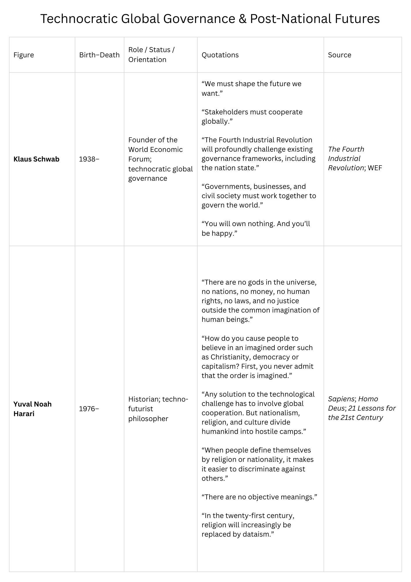 νέα πολιτικά και θεσμικά οράματα παγκόσμιας διακυβέρνησης. Προσωπικότητες με