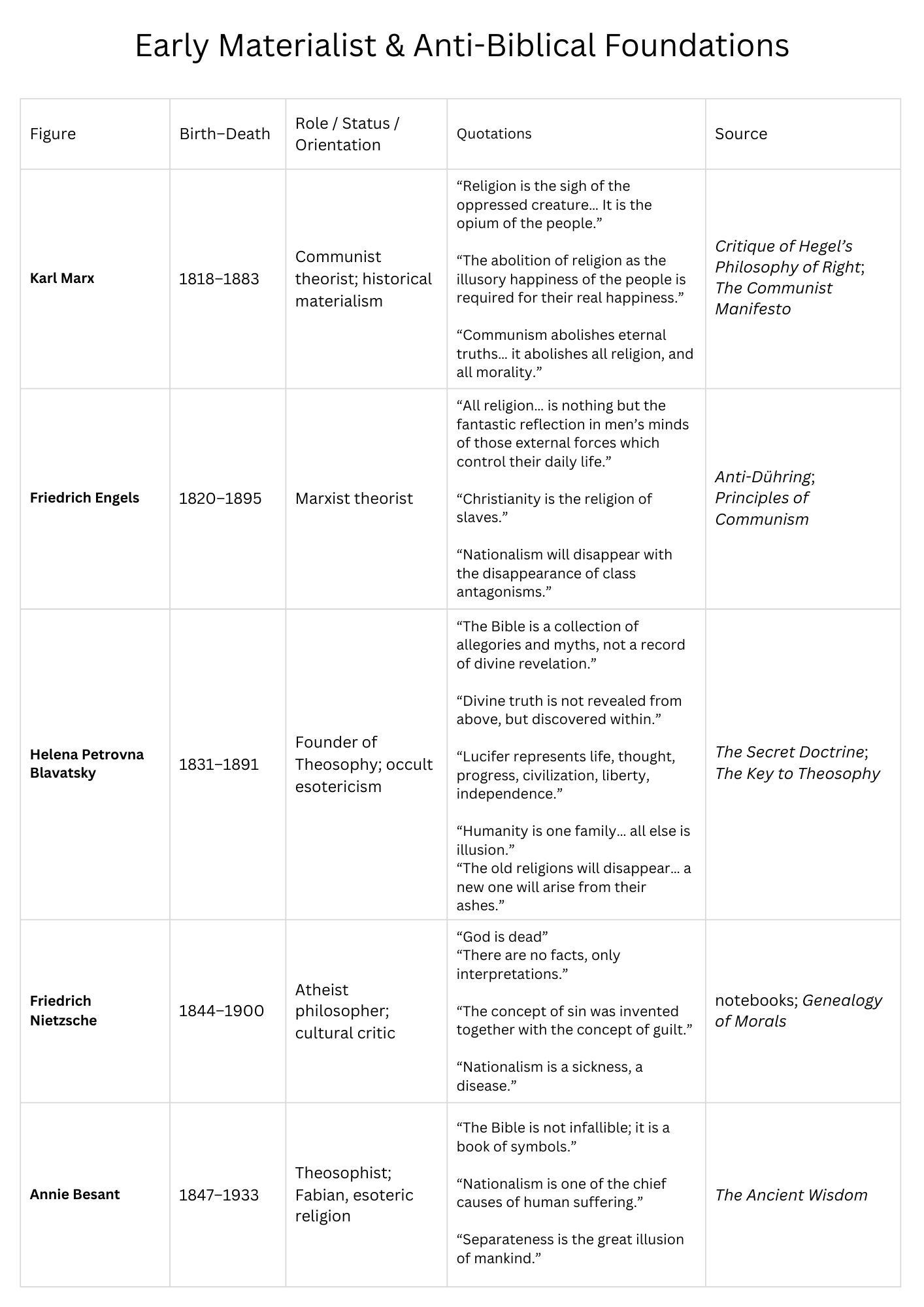 της θρησκείας που συνδέονται με προσωπικότητες όπως ο Καρλ Μαρξ, ο Φρίντριχ