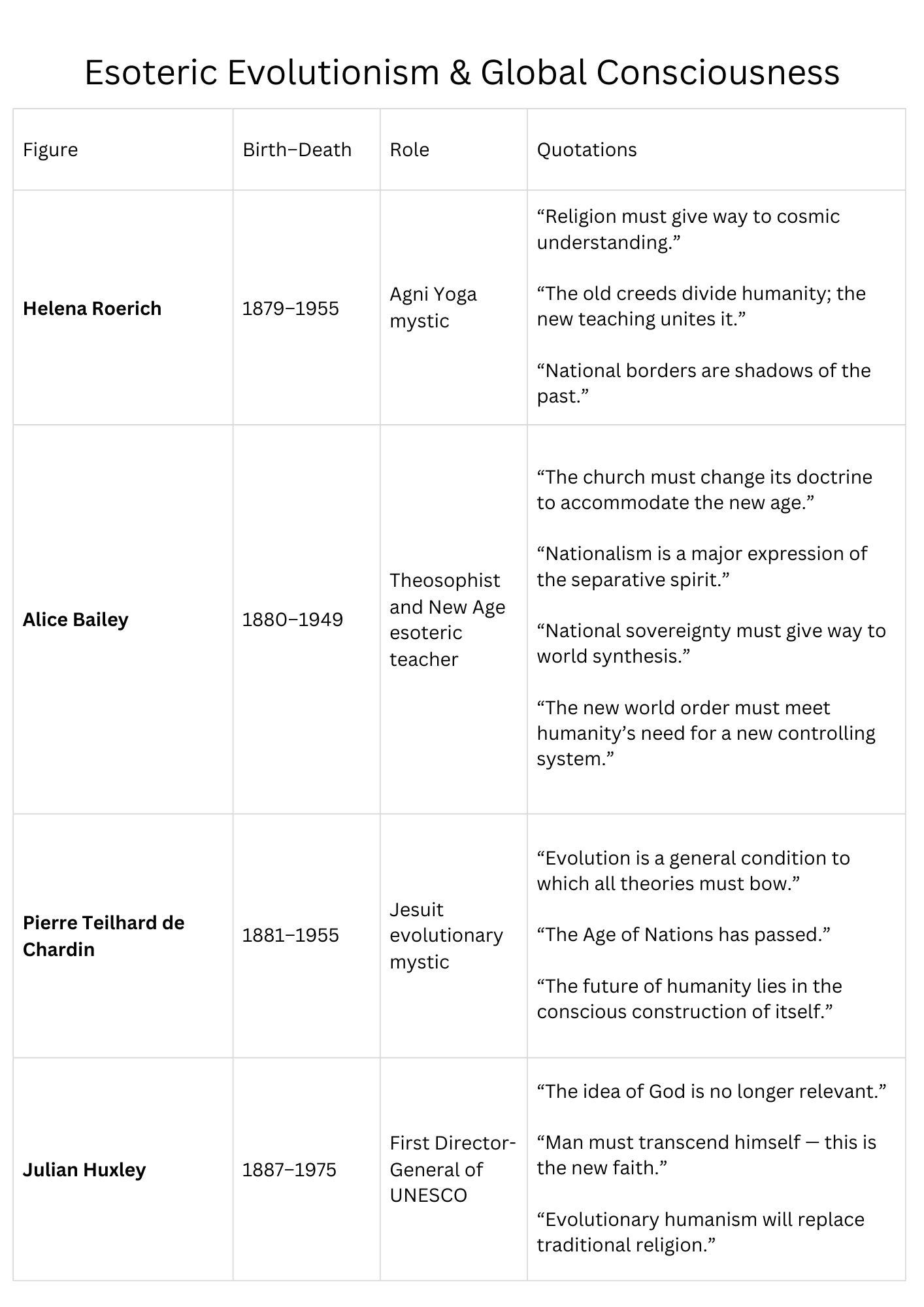έμφαση στην παγκόσμια συνείδηση, την παγκόσμια ενότητα και την υπέρβαση των