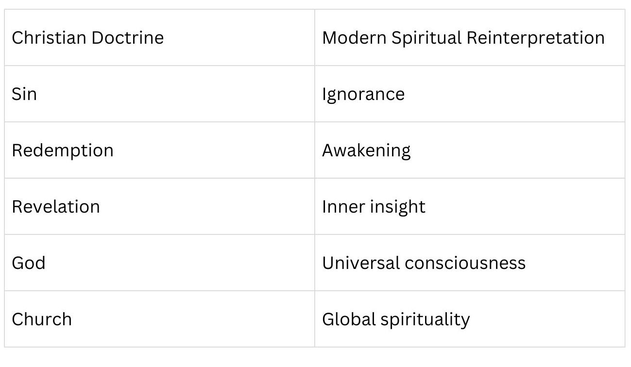 παραδοσιακά χριστιανικά δόγματα αναδιατυπώθηκαν ως αλληγορίες της ανθρώπινης