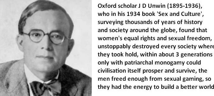 Ο Unwin πέρασε επτά χρόνια αναλύοντας ογδόντα πολιτισμούς σε πέντε χιλιάδες χρόνια ανθρώπινης ιστορίας. Ξεκίνησε την έρευνα περιμένοντας να αποδείξει ότι η σεξουαλική απελευθέρωση καταλύει την πολιτιστική άνθηση. Ήταν ένας ορθολογιστής, ένας κοινωνικός ανθρωπολόγος που λειτουργούσε στην αισιόδοξη λάμψη του σχεδίου του Διαφωτισμού. Ήθελε τα δεδομένα να επιβεβαιώσουν αυτό που υποσχέθηκε η νεωτερικότητα: ότι η απόρριψη του σεξουαλικού περιορισμού θα απελευθέρωνε το ανθρώπινο δυναμικό.