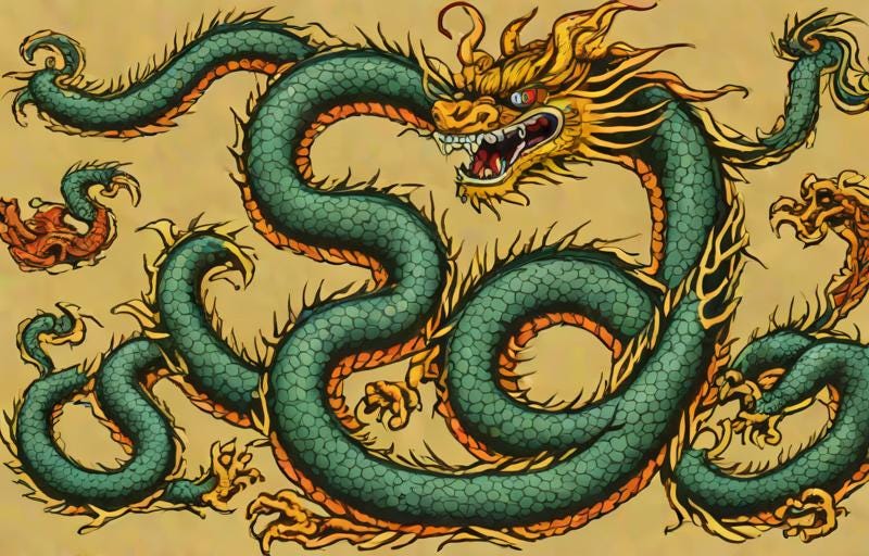 Οι σκαλιστές κεραίες που βλέπουμε στα εικονογραφήματα μας θυμίζουν το έμβλημα του κεφαλιού ενός άλλου συμβόλου. Ο κινεζικός αυτοκρατορικός δράκος.