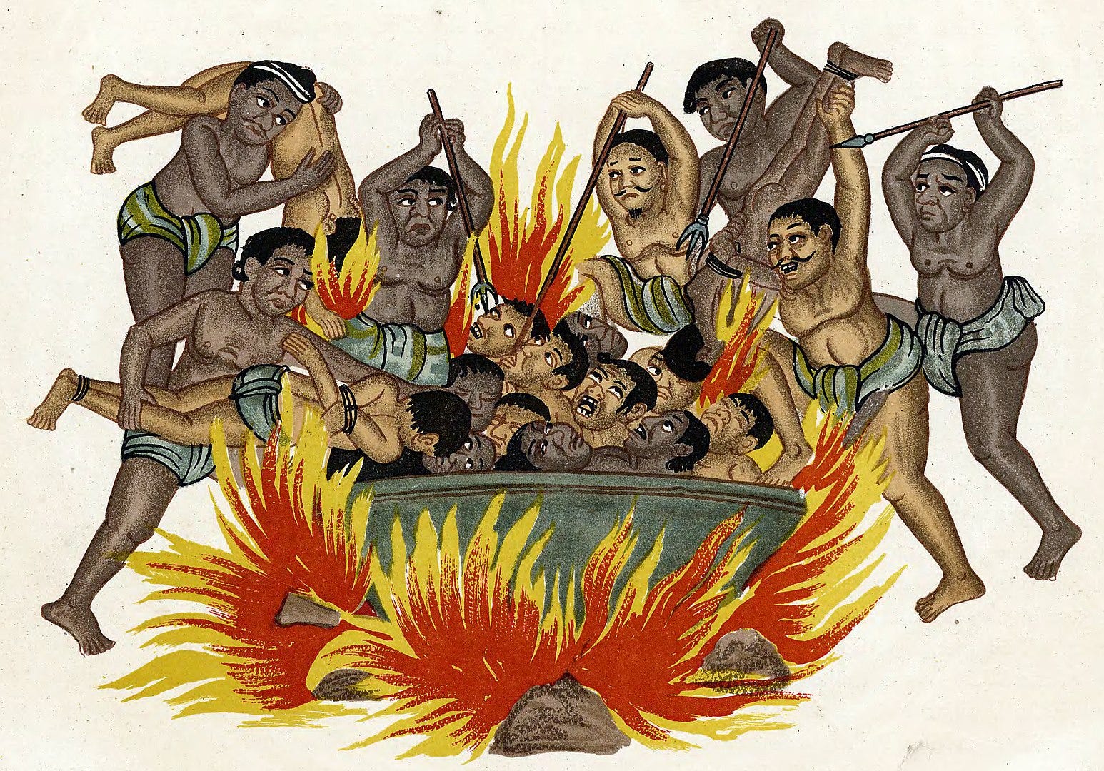 Μια τοιχογραφία από ένα ναό στη βόρεια Ταϊλάνδη. Τα γυμνά πνεύματα των νεκρών οδηγούνται ενώπιον του Γιάμα για κρίση. Ο Phra Malaya παρακολουθεί από ψηλά καθώς τα όντα τηγανίζονται σε ένα μεγάλο καζάνι Home | Substack