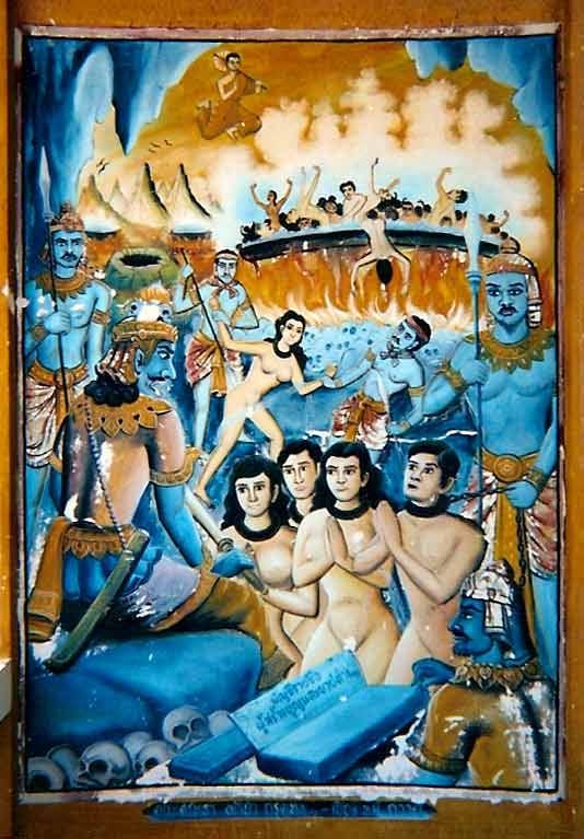Καθώς ταξίδευα σε βουδιστικές χώρες (ακολουθώντας τον δρόμο του μεταξιού στην Κίνα ή στη Νοτιοανατολική Ασία), επισκέφθηκα αρκετούς βουδιστικούς ναούς. Ένα πράγμα που με προβλημάτισε ήταν οι τοιχογραφίες ναών που έμοιαζαν πολύ με χριστιανική κόλαση. Για παράδειγμα, το είδα σε έναν ναό στο Dunhuang, αλλά δεν μπορούσα να τραβήξω μια καλή φωτογραφία, οπότε εδώ είναι ένα από τη Μιανμάρ: