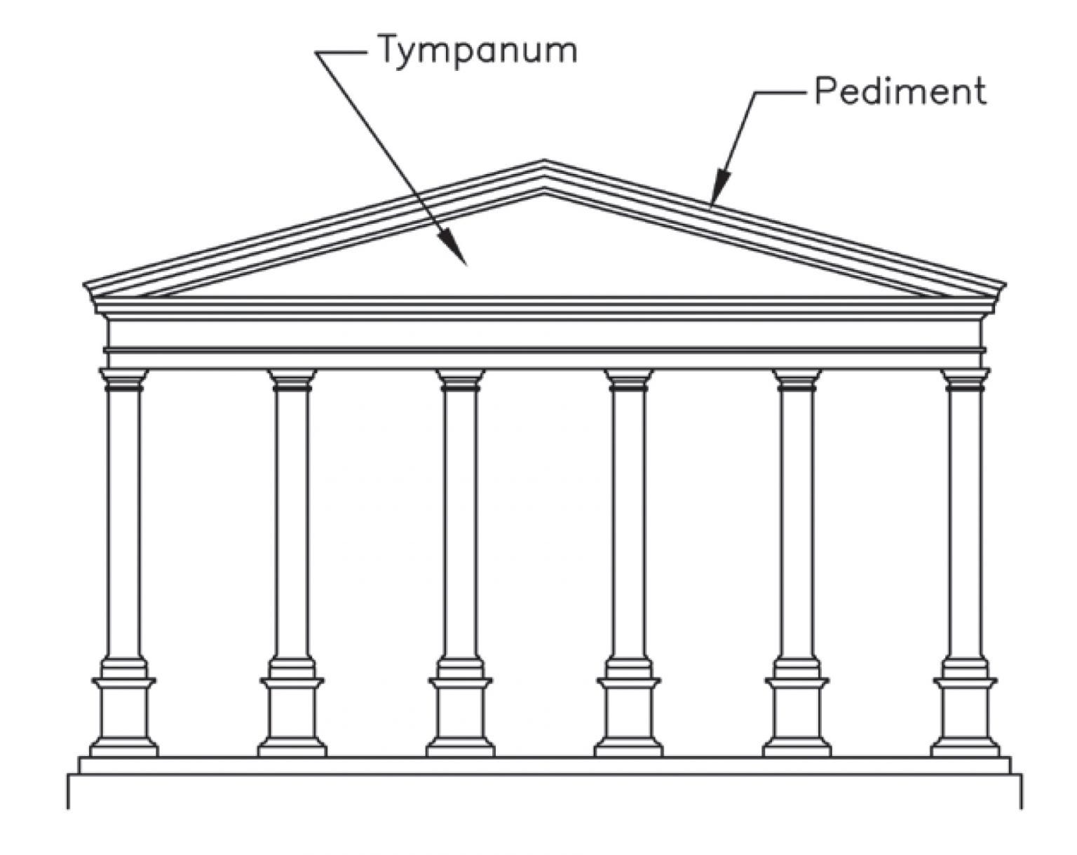 Μέσα στην τριγωνική περιοχή του αετώματος βρίσκεται το τύμπανο, συχνά διακοσμημένο με εικόνες, επιγραφές ή ακόμα και ένα ρολόι, όπως φαίνεται στη διάσημη σκηνή του Back to the Future του 1985, όπου ένας κεραυνός πυροδοτεί ένα ηλεκτρικό ρεύμα με αποτέλεσμα μια πυρκαγιά στην κορυφή μιας στήλης...