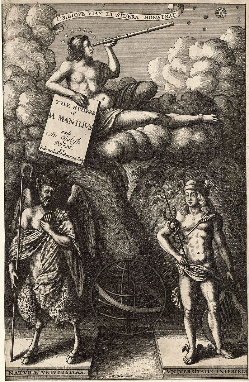 Η Astronomica ξεκινά με τον Manilius να ισχυρίζεται ότι είναι ο «πρώτος που τραγούδησε της αστρολογίας», υποστηρίζοντας επίσης ότι ο θεός Ερμής προκάλεσε το ενδιαφέρον του για τα ουράνια σώματα. Λέγεται ότι μελέτησε τους καλύτερους συγγραφείς και «γενικά αντιπροσωπεύει τις πιο προηγμένες απόψεις των αρχαίων για την αστρονομία (ή μάλλον την αστρολογία)» και, «Η βασική αρχή της φυσικής φιλοσοφίας [του] είναι η ιδέα ότι το σύμπαν είναι θεϊκό».