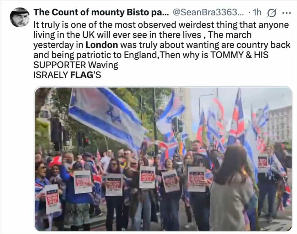 Ο Τόμι Ρόμπινσον έκανε για άλλη μια φορά πρωτοσέλιδα, ισχυριζόμενος ότι "εκατομμύρια" συμμετείχαν στο αντι-μεταναστευτικό συλλαλητήριο του Unite the Kingdom στο Λονδίνο. Αλλά η ιστορία δεν είναι τόσο απλή — από την αρχή, ολόκληρο το πολιτικό του σχέδιο ήταν βαθιά συνδεδεμένο με τα ισραηλινά και σιωνιστικά συμφέροντα.