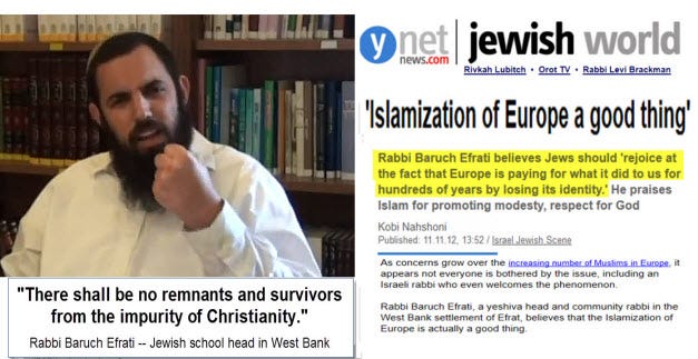 Στο μεταξύ η ισλαμοποίηση της Δύσης χαιρετίζεται από πολλούς ραβίνους που θέλουν να τιμωρηθούν οι χριστιανοί για ¨όσα τους έκαναν για εκατοντάδες χρόνια”.