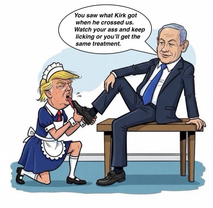 Η Αμερική έχει χάσει την κυριαρχία της. Από τη γενοκτονία του Ισραήλ στη Γάζα και τις μαζικές συλλήψεις στη Δυτική Όχθη, μέχρι τη χρηματοδότηση της Χαμάς από τον Νετανιάχου και τις νέες επιθέσεις στο Κατάρ—η Ουάσινγκτον φαίνεται αντίθετη. Ακόμα και διαφωνούντες φωνές όπως ο Τσάρλι Κερκ αντιμετωπίζουν μυστηριώδη άκρα όταν ανακρίνουν την 7η Οκτωβρίου ή τον Έπσταϊν. Με την AIPAC να ελέγχει σχεδόν κάθε πολιτικό και τους πληροφοριοδότες όπως ο Δρ Robert Duncan να προειδοποιούν για τις τεχνολογίες ελέγχου του νου που χρησιμοποιούνται στους Αμερικανούς, είναι σαφές: το έθνος μας δεν είναι πλέον ελεύθερο.