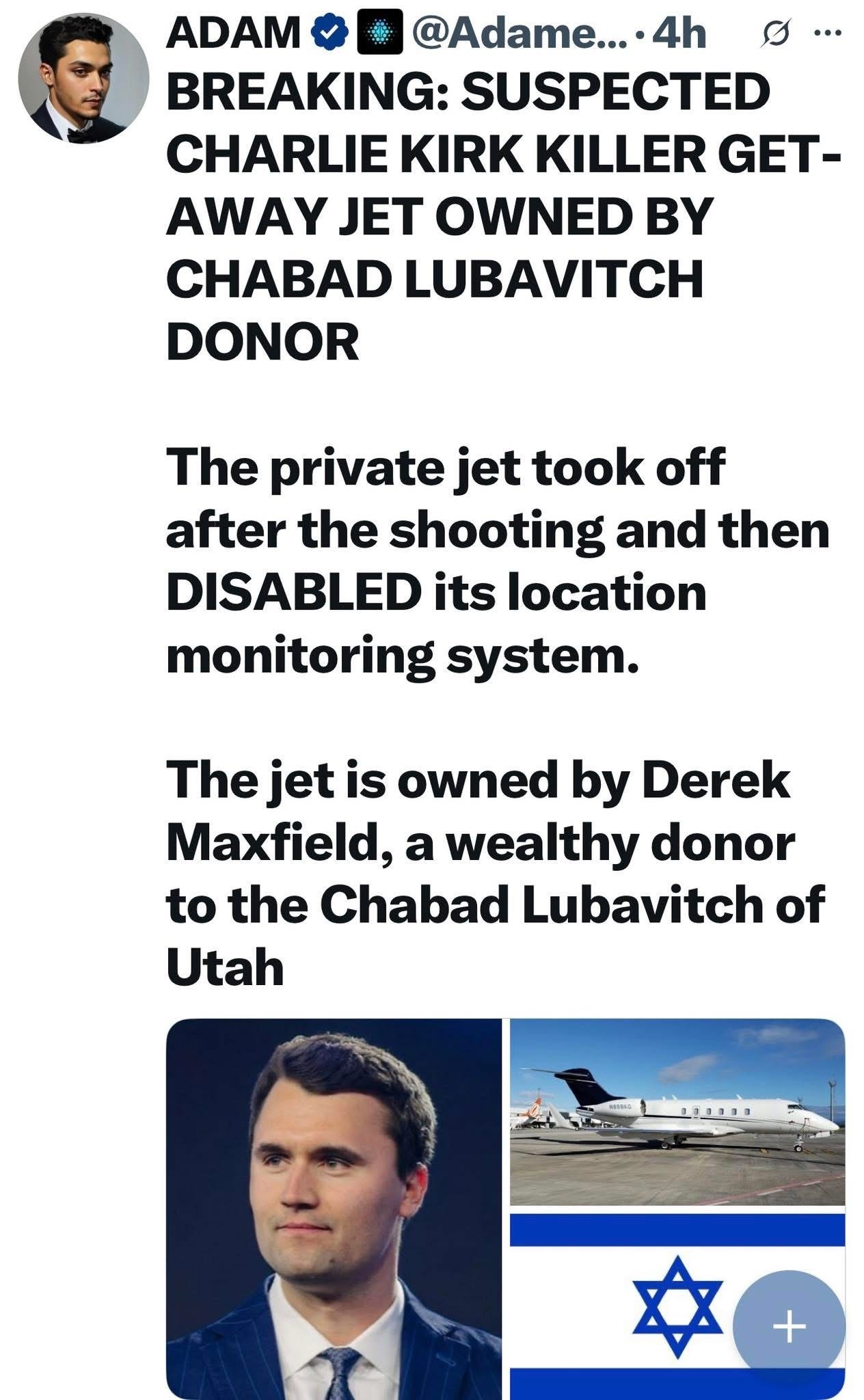 Ένα ιδιωτικό τζετ απενεργοποίησε το σύστημα παρακολούθησης της τοποθεσίας του ενώ αναχωρούσε από το αεροδρόμιο Provo (12 λεπτά από το Πανεπιστήμιο Utah Valley) μία ώρα μετά τη δολοφονία του CHARLIE KIRK