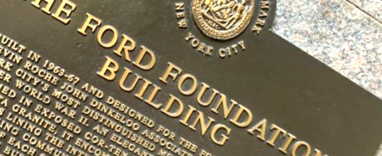 Το Ίδρυμα Ford της Νέας Υόρκης παρουσιάζεται ως μια «προοδευτική» και αριστερή-φιλελεύθερη οντότητα.