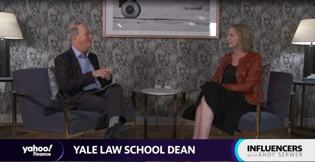 Το ίδρυμα ανακοίνωσε τον Ιούλιο ότι αυτή η «εθνικά αναγνωρισμένη εμπειρογνώμονας συνταγματικού δικαίου» θα εγκαταλείψει τη δουλειά της ως κοσμήτορας της Νομικής Σχολής του Yale για να γίνει ο 11ος πρόεδρός της. [54]