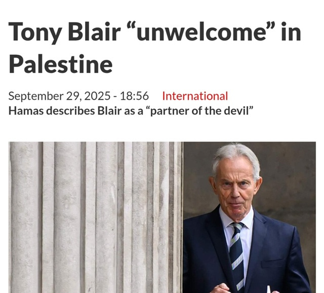 🟥 Ταυτόχρονα, ο Μπλερ είναι κορυφαίος υποψήφιος, με την υποστήριξη των ΗΠΑ, για να τεθεί επικεφαλής μιας μεταβατικής αρχής στη Γάζα. Αυτό θα τοποθετούσε έναν βασικό αρχιτέκτονα του πολέμου στο Ιράκ στον έλεγχο του μέλλοντος του πληθυσμού της Γάζας.