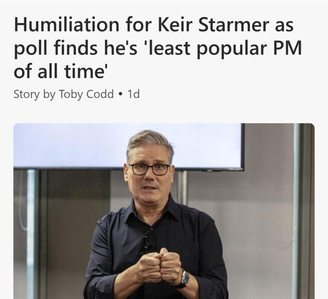 Πρόσφατη δημοσκόπηση της Ipsos αποκαλύπτει ότι ο Κίρ Στάρμερ είναι ο πιο αντιδημοφιλής πρωθυπουργός του Ηνωμένου Βασιλείου στην ιστορία!