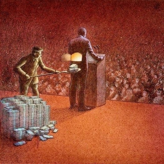 Τέλος μην πιστεύετε στους πολιτικούς σήμερα. Ο νεοφιλελευθερισμός μαζί με την καταστροφή όλων των άλλων κατέστρεψε και την “αντιπροσωπευτική δημοκρατία”.