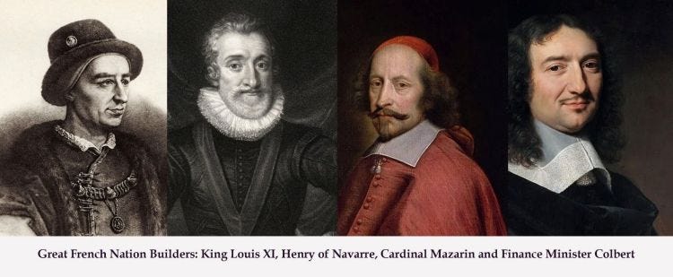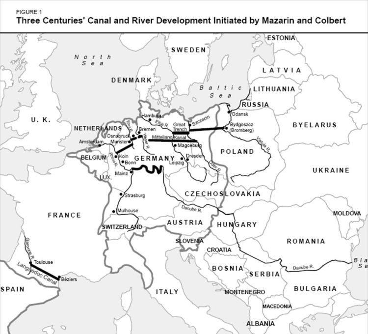 Στη Γαλλία, ένα από τα μεγαλύτερα έργα υποδομής στην ιστορία ξεκίνησε υπό τον Μαζαρίνο και συνεχίστηκε από τον στενό συνεργάτη του Jean-Baptiste Colbert που ονομάζεται La Canal Du Midi (γνωστός και ως: Κανάλι Languedoc). Αυτό ήταν ένα κανάλι 240 χιλιομέτρων που δημιουργούσε ένα άμεσο πέρασμα μεταξύ του Ατλαντικού με τη Μεσόγειο εξαλείφοντας μια παράκαμψη 3000 χιλιομέτρων γύρω από το ισπανικό στενό του Γιβραλτάρ που ελέγχεται από τους Αψβούργους [βλ. χάρτη].