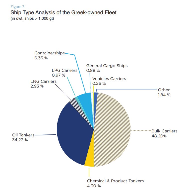 Η αλήθεια είναι λίγο πιο σύνθετη όμως. Κάποιο κομμάτι του εφοπλιστικού κόσμου της Ελλάδας που διαθέτει περίπου το 21% του παγκόσμιου εμπορικού στόλου (περίπου 100.000 πλοία) έχει επενδύσει σε αυτό. Το 34.27% κατέχει τάνκερ πετρελαίου.