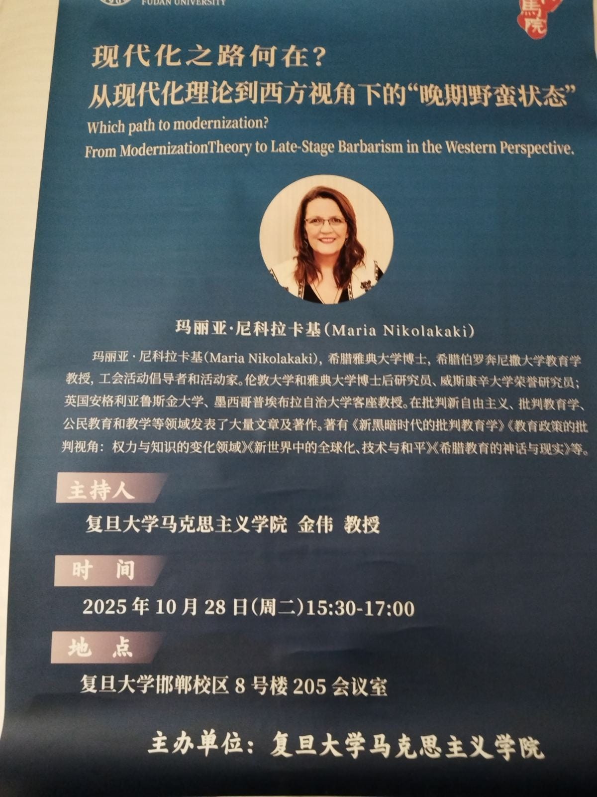 Η εμπειρία μου ήταν καταπληκτική. Για άλλη μια φορά οι Κινέζοι αποδεικνύουν πως είναι οι καλύτεροι διοργανωτές συνεδρίων και οι πιο φιλόξενοι. Στο Συμπόσιο συμμετείχαν 22 καθηγητές, οι περισσότεροι Κινέζοι, από τους οποίους δύο ήταν Ρώσοι, ένας Ισπανός και εγώ φυσικά από την Ελλάδα.Το θέμα της ομιλίας μου ήταν: Which path to modernization? From Modernization Theory to Late-Stage Barbarism in the Western Perspective.