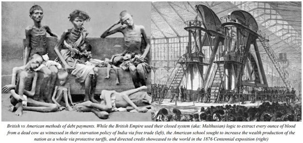 Σε αντίθεση με αυτό το αρπακτικό σύστημα, ο οικονομικός σύμβουλος του Αβραάμ Λίνκολν, Henry C. Carey, περιέγραψε μια διαφορετική έννοια των παγκόσμιων συστημάτων που αναγνώριζε ότι η αξία βρίσκεται στη δύναμη της δημιουργίας κάθε μεμονωμένου πολίτη και κάθε μεμονωμένου έθνους-κράτους.