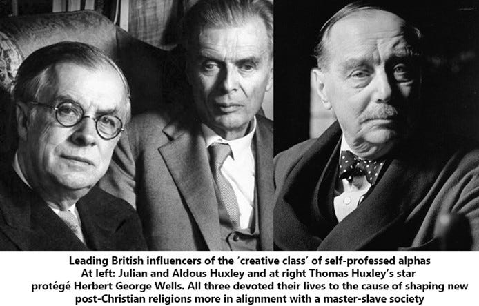 Θα πρέπει επίσης να σημειωθεί ότι αυτό το σύστημα ήταν η κινητήρια δύναμη για το πολυκέφαλο τερατούργημα που ονομάστηκε «Μετανθρωπισμός» από τον Sir Julian Huxley το 1954, ο οποίος υπηρέτησε επίσης τους κληρονομικούς δασκάλους του ως νονός του σύγχρονου κινήματος διατήρησης, ιδρύοντας τη Διεθνή Ένωση για τη Διατήρηση της Φύσης το 1947 και το Παγκόσμιο Ταμείο Άγριας Ζωής το 1961.