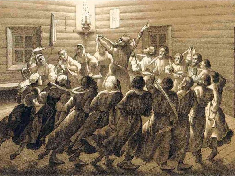 Αυτοί οι άνθρωποι είχαν αποσχιστεί από τη Ρωσική Ορθόδοξη Εκκλησία το 1600 με μια απλή αιρετική προϋπόθεση: θα μπορούσατε να φιλοξενήσετε το Άγιο Πνεύμα απευθείας στο σώμα σας χωρίς ιερείς ή εικόνες ή οποιονδήποτε επίσημο θρησκευτικό μηχανισμό. Κάθε μυστικό κελί λειτουργούσε υπό έναν άνδρα και μια γυναίκα που αποκαλούσαν τους εαυτούς τους «Χριστό» και «Μητέρα του Θεού». Σαράντα χιλιάδες οπαδοί σε όλη την αυτοκρατορία ασκούσαν τελετουργίες που θα σας ακρωτηρίαζαν αν σας έπιαναν οι αρχές.