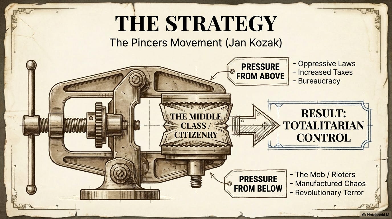 Η πηγή περιγράφει λεπτομερώς μια συγκεκριμένη στρατηγική, που περιγράφεται από τον Τσεχοσλοβάκο κομμουνιστή Jan Kozak, για την ανατροπή μιας αντιπροσωπευτικής κυβέρνησης εκ των έσω.