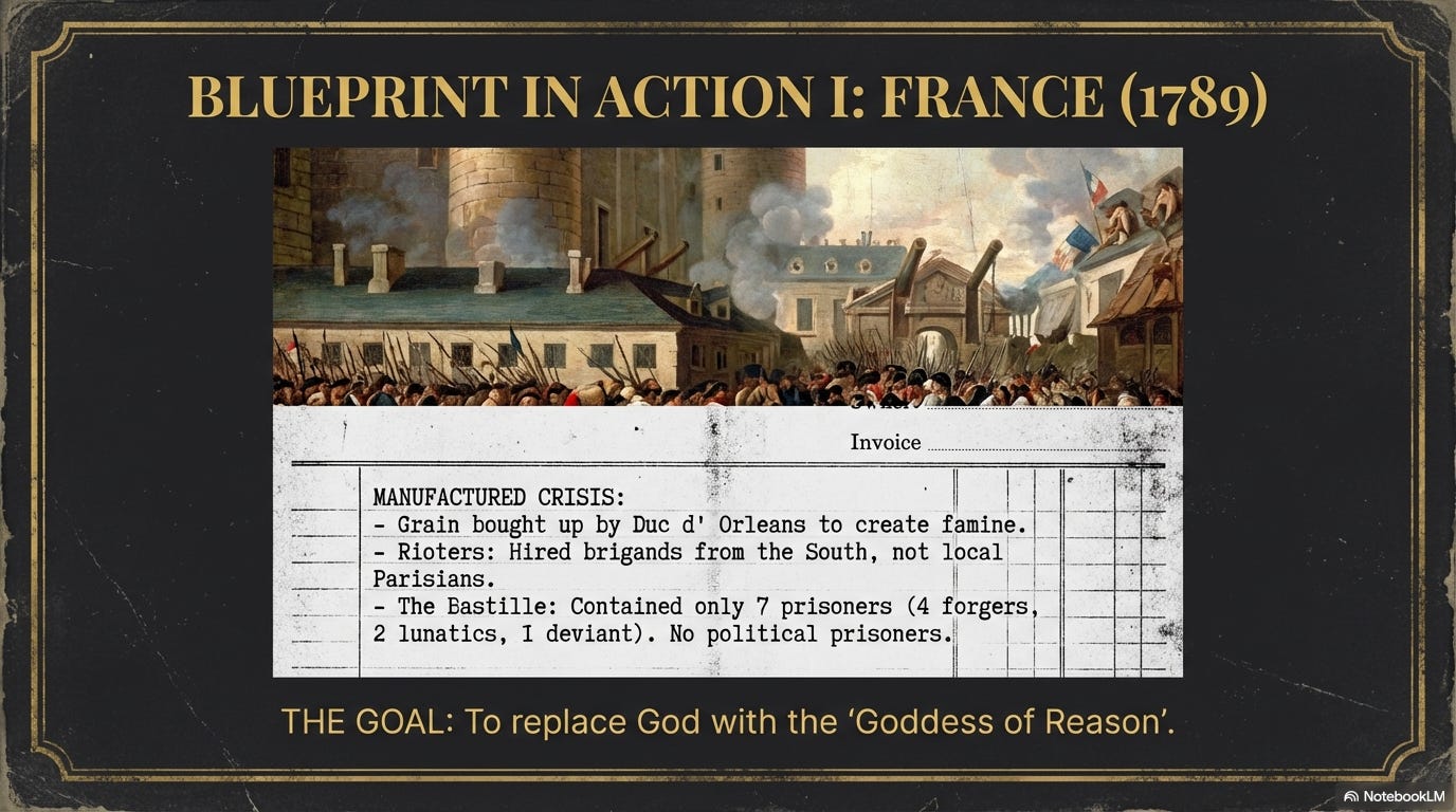 Μισθωμένοι όχλοι: Η έφοδος στη Βαστίλη πραγματοποιήθηκε από περίπου 1.000 πληρωμένους ληστές και ξένους, όχι από τους κατοίκους του Παρισιού. Στόχος ήταν η κατάσχεση όπλων, καθώς η φυλακή κρατούσε μόνο επτά κρατούμενους.