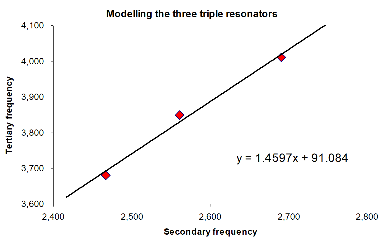 Σημαίνει ότι οι τρεις τριτογενείς συχνότητες έχουν κατασκευαστεί με συνέπεια ώστε να είναι σχεδόν ακριβώς μιάμιση φορά υψηλότερες σε τόνο από τις αντίστοιχες δευτερεύουσες συχνότητες τους. Αυτή η αναλογία δεν είναι οποιαδήποτε μουσική αναλογία. Είναι ο λόγος του τέλειου πέμπτου