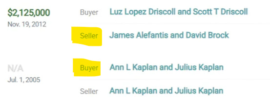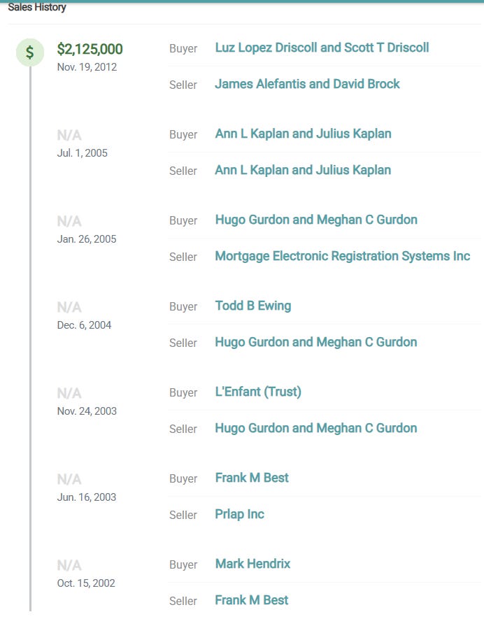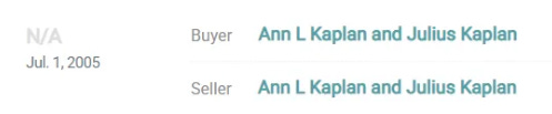 Εδώ (https://blockshopper.com/dc/washington-county-dc/washington/property/25190282/2310-california-street-nw) βλέπουμε αυτό το ακίνητο, το οποίο βγήκε για πρώτη φορά προς πώληση το 2002, έχει πουληθεί πέρα δώθε, με πολλούς από τους προηγούμενους ιδιοκτήτες να το αγοράζουν ο ένας από τον άλλο και τους πωλητές να το αγοράζουν από τον εαυτό τους. Δεν έχω ξαναδεί κάτι τέτοιο.