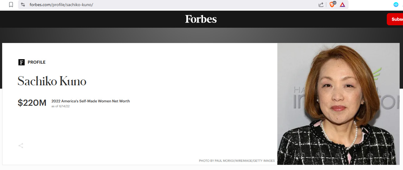 Το Ίδρυμα Sachiko Kuno, το οποίο ιδρύθηκε από έναν Ιάπωνα επιστήμονα που είναι συνιδρυτής δύο φαρμακευτικών εταιρειών. Αυτή η γυναίκα αξίζει 220 εκατομμύρια δολάρια, σύμφωνα με το Forbes.
