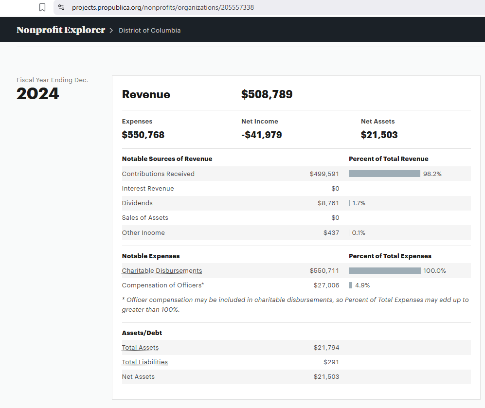 Θα έπρεπε να το είχα επισημάνει στο μέρος αυτής της δημοσίευσης σχετικά με την Erika Kirk και όλες τις υπάρχουσες αλλά ανύπαρκτες φιλανθρωπικές οργανώσεις της: μια κανονική επιχείρηση έχει κάποια μορφή παρουσίας στο διαδίκτυο, ακόμα κι αν αναφέρεται μόνο ως διεύθυνση ή αριθμός τηλεφώνου. Όταν μια επιχείρηση δεν έχει απολύτως τίποτα, πρέπει να υποθέσουμε ότι έπαψε να λειτουργεί. Οι επιχειρήσεις αποτυγχάνουν να ξεκινήσουν κάθε μέρα. Δεν υπάρχει τίποτα αφύσικο στο να δημιουργεί κάποιος μια επιχείρηση που δεν πραγματοποιείται ποτέ. Τούτου λεχθέντος, αυτό που δεν είναι φυσιολογικό είναι να βλέπεις μια επιχείρηση χωρίς ιστορικό οποιασδήποτε μορφής, χωρίς μέσα κοινωνικής δικτύωσης, χωρίς ιστότοπο, χωρίς κριτικές πελατών (ούτε καν μια κακή κριτική που άφησε μια τρελή κυρία που δεν θα είχε γίνει ποτέ ευτυχισμένη ό,τι κι αν προσπαθούσε να κάνει η εταιρεία για αυτήν) και - εδώ είναι το βασικό - ότι η επιχείρηση συνεχίζει να ανανεώνει τις νομικές καταθέσεις της οντότητάς της στην κυβέρνηση χρόνο με το χρόνο. Ο λόγος που αυτό είναι μια κόκκινη σημαία είναι επειδή οι αρχειοθετήσεις οντοτήτων είναι ακριβές. Στην Ουάσιγκτον, DC, το κόστος είναι 300 $ ανά οντότητα κάθε δύο χρόνια.