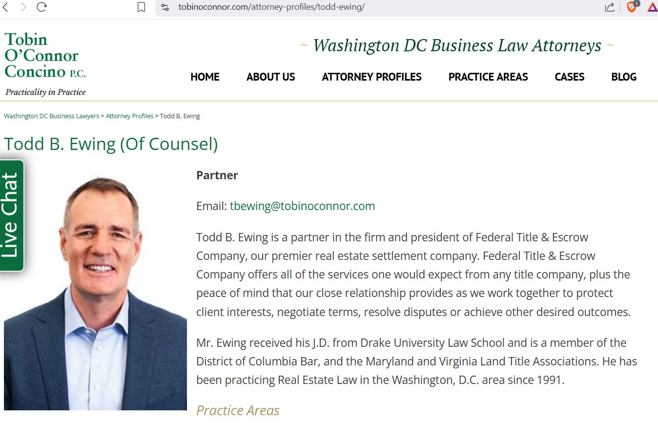 Ο Todd B. Ewing, ο αγοραστής του 2004, είναι συνεργάτης σε δικηγορική εταιρεία και πρόεδρος της Federal Title & Escrow Company.