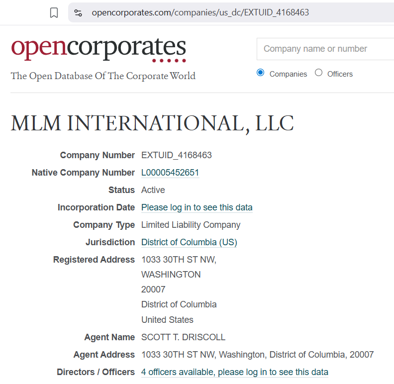Αυτή η διεύθυνση και το email επιβεβαιώνουν ότι και οι δύο αυτές εταιρείες με το όνομα MLM International είναι ένα και το αυτό. Η διεύθυνση και στα δύο (1033 30th St NW, Washington, DC) σας φέρνει εδώ.