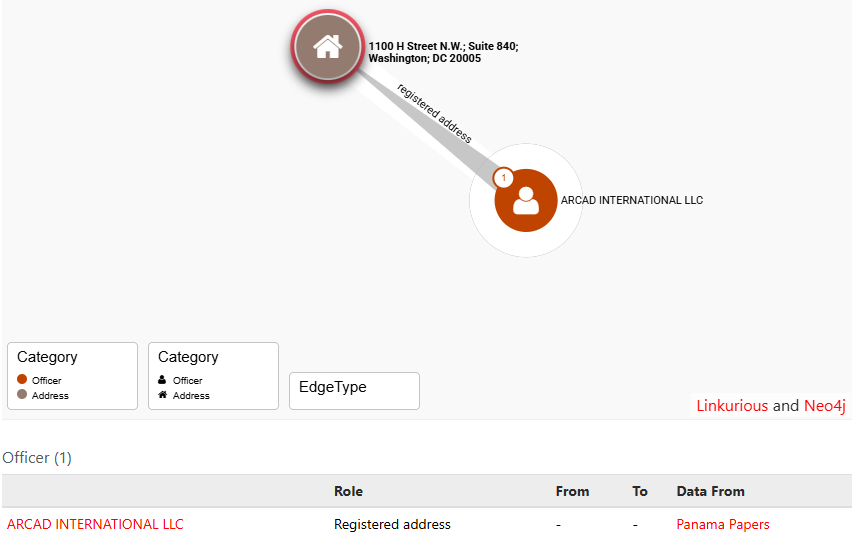 Ναι, η ίδια διεύθυνση που πραγματοποίησε τη νομική κατάθεση για την Big Cheese LLC του Τζέιμς Αλεφάντη αναφέρεται στα Panama Papers ως διεύθυνση που συνδέεται με μια εταιρεία κέλυφος. Αυτή η διεύθυνση, 1100 H Street, Suite 840, χρησιμοποιήθηκε για την κατάθεση νομικών εγγράφων για μια εταιρεία κέλυφος με την επωνυμία ARCAD INTERNATIONAL, LLC. Στην πραγματικότητα, η οδός 1100 H, Suite 840 είναι η νόμιμη διεύθυνση της ARCAD INTERNATIONAL.