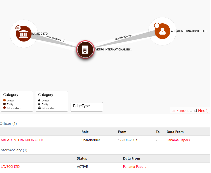 Η Vetro συνδέεται με μια εταιρεία που ονομάζεται Laveco, LTD.