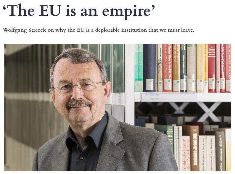 Επιπλέον, ο Αυστριακός ακαδημαϊκός Wolfgang Streeck σωστά επισημαίνει ότι η ΕΕ είναι μια αυτοκρατορία.