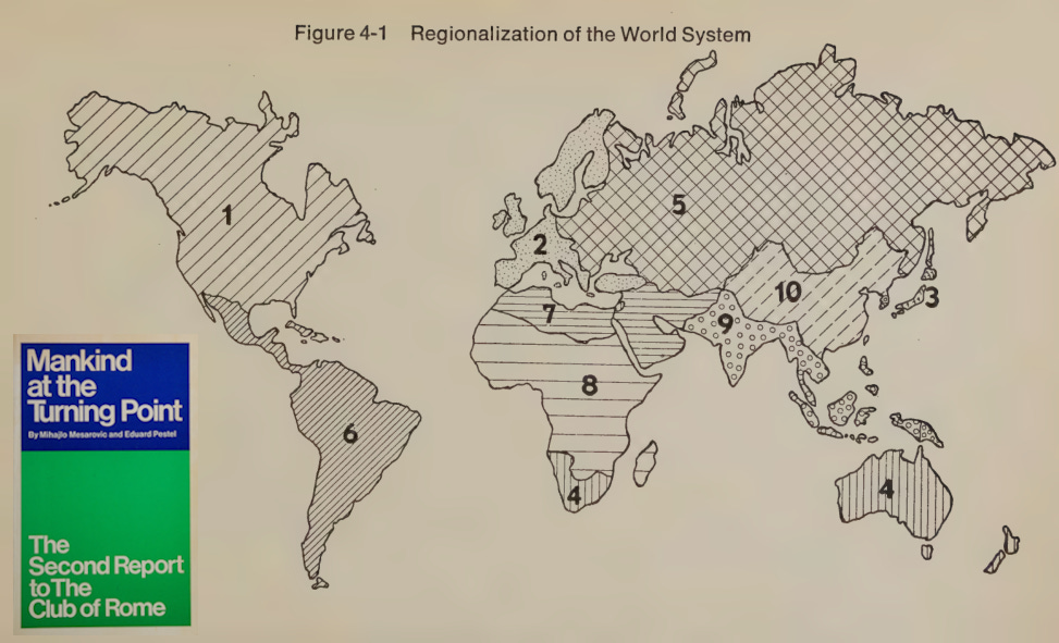 Το 1974 η Λέσχη της Ρώμης δημοσίευσε τον χάρτη ενός «πολυεπίπεδου μοντέλου» ενός περιφερειακού «παγκόσμιου συστήματος» χωρισμένου σε δέκα μέρη.