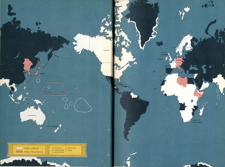 Το 1942 ο Maurice Gomberg δημοσίευσε μόνος του έναν περιφερειακό χάρτη μιας παγκόσμιας κοινοπολιτείας, στο πνεύμα αυτού που επιδίωκε η Αγγλοαμερικανική Στρογγυλή Τράπεζα της Ρόδου.