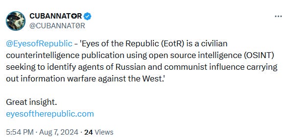 Τον Ιούλιο του 2024 αυτό το νέο δίκτυο παρήγαγε ένα επιτυχημένο κομμάτι για μένα ανοιχτά και ξεδιάντροπα γεμάτο ψέματα και συκοφαντίες. Το ένστικτό μου μου είπε ότι αυτή ήταν ξεκάθαρα μια επιχείρηση του κράτους ασφαλείας.