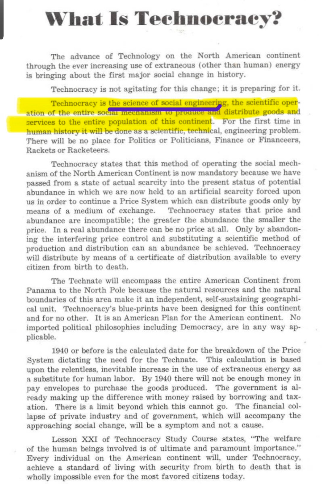Για να κατανοήσουμε τι υιοθέτησε η Τριμερής Επιτροπή το 1973, πρέπει να αναφερθούν με ακρίβεια οι δύο πυλώνες της ιστορικής Τεχνοκρατίας.1. Η πρώτη είναι η κοινωνική μηχανική — η εφαρμογή της επιστημονικής διαχείρισης στην ανθρώπινη συμπεριφορά, αντικαθιστώντας τη συναίνεση των κυβερνώμενων με την εξειδικευμένη διαχείριση των πληθυσμών. Το περιοδικό Technocrat το ονόμασε «επιστήμη της κοινωνικής μηχανικής» το 1937, η ίδια φράση που εμφανίζεται αυτολεξεί στο στιγμιότυπο οθόνης που εισήγαγα παραπάνω σε σχέση με την αντιμετώπιση του μοντέλου διακυβέρνησης του Andrew Yang. 2.Ο δεύτερος πυλώνας είναι οικονομικός: Η Technocracy Inc. προέκυψε απευθείας από τη Μεγάλη Ύφεση ως προτεινόμενη αντικατάσταση του συστήματος τιμών - χρήμα, μισθοί, ανταλλαγή αγοράς - με ένα ενεργειακό λογιστικό σύστημα. Στο πλαίσιο των Howard Scott και M. King Hubbert, κάθε πολίτης θα λάμβανε «ενεργειακά πιστοποιητικά» - μη μεταβιβάσιμες μονάδες κατανομής ενέργειας που λήγουν - αντί για χρήματα, που εκδίδονται και παρακολουθούνται από μια κεντρική επιστημονική διοίκηση. Δεν μπορούσες να τους σώσεις. Δεν μπορούσες να τα συσσωρεύσεις. Δεν μπορούσατε να εξαιρεθείτε από το σύστημα που τα εξέδωσε. Η Τριμερής Επιτροπή, που ιδρύθηκε από τους Zbigniew Brzezinski και David Rockefeller το 1973, υιοθέτησε αθόρυβα μια εκσυγχρονισμένη εκδοχή αυτής της αρχιτεκτονικής ως «Νέα Διεθνή Οικονομική Τάξη» - με ρητό στόχο, όπως τεκμηρίωσε ο Patrick Wood μαζί με τον Antony Sutton στο Trilaterals Over Washington, να κατέχει και να ελέγχει τους σημαντικότερους πόρους του κόσμου. Το σύστημα τιμών επρόκειτο να αντικατασταθεί όχι με ενεργειακά πιστοποιητικά στην ακατέργαστη μορφή τους της δεκαετίας του 1930, αλλά με την πολύ πιο εξελιγμένη υποδομή της Βιώσιμης Ανάπτυξης, της λογιστικής άνθρακα και τώρα της πιστοποίησης ψηφιακών περιουσιακών στοιχείων - όλα αυτά μετρούν, κατανέμουν και περιορίζουν την ανθρώπινη οικονομική δραστηριότητα μέσω μιας επιστημονικά διαχειριζόμενης μέτρησης και όχι μιας ελεύθερης αγοράς. Πολλά στοιχεία δείχνουν ότι η πράσινη οικονομία δεν ήταν ένα έργο για το κλίμα. Ήταν το ενεργειακό λογιστικό σύστημα, που μετονομάστηκε. Όταν το σήμα του κλιματικού φορέα έχασε την πολιτιστική αγορά - όταν άρχισε η καθαρή μηδενική κόπωση και το πλήθος του Νταβός στράφηκε στην τεχνητή νοημοσύνη στη σύνοδο κορυφής του 2026 χωρίς να χάσει ούτε βήμα - η υποκείμενη αρχιτεκτονική δεν άλλαξε. Μόνο ο φόβος που διαχειριζόταν το έκανε. Οι ράγες χρηματοδότησης κοινωνικού αντίκτυπου, η υποδομή ψηφιακής ταυτότητας, το επίπεδο πιστοποίησης συμπεριφοράς: αυτά είναι τα ενεργειακά πιστοποιητικά της εποχής της τεχνητής νοημοσύνης. Τα ανθρώπινα όντα, σε αυτό το σύστημα, δεν είναι πολίτες με αναφαίρετα δικαιώματα. Είναι κόμβοι ανθρώπινου κεφαλαίου των οποίων τα αποτελέσματα μετρώνται, κατανέμονται και βελτιστοποιούνται από μια επιστημονική διοίκηση που καμία εκλογή δεν μπορεί να φτάσει.